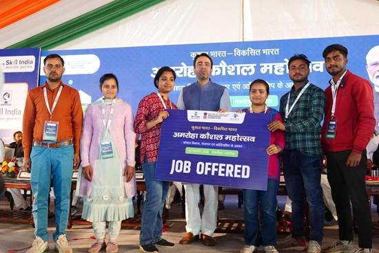 Minister of State (Independent Charge), for Skill Development and Entrepreneurship and Minister of State for Education, Government of India, Shri Jayant Chaudhary, today handed over appointment letters to selected candidates at the Amroha Kaushal Mahotsav, underscoring the Government’s sustained focus on linking skilling with employment at the grassroots level.